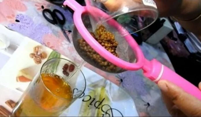 - ნახარში გადმოდგით ცეცხლიდან, მიეცით დრო გასაგრილებლად და შემდეგ გადაწურეთ სუფთა ჭიქაში.