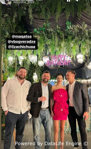 ტელეწამყვან ირაკლი მაქაცარიას მეუღლე ლიზა ჩიჩუა 25 მარტს იუბილარი იყო. მან დაბადების დღე მეგობრების გარემოცვაში აღნიშნა. ლიზა ჩიჩუას ვარდისფერი კაბა ეცვა.